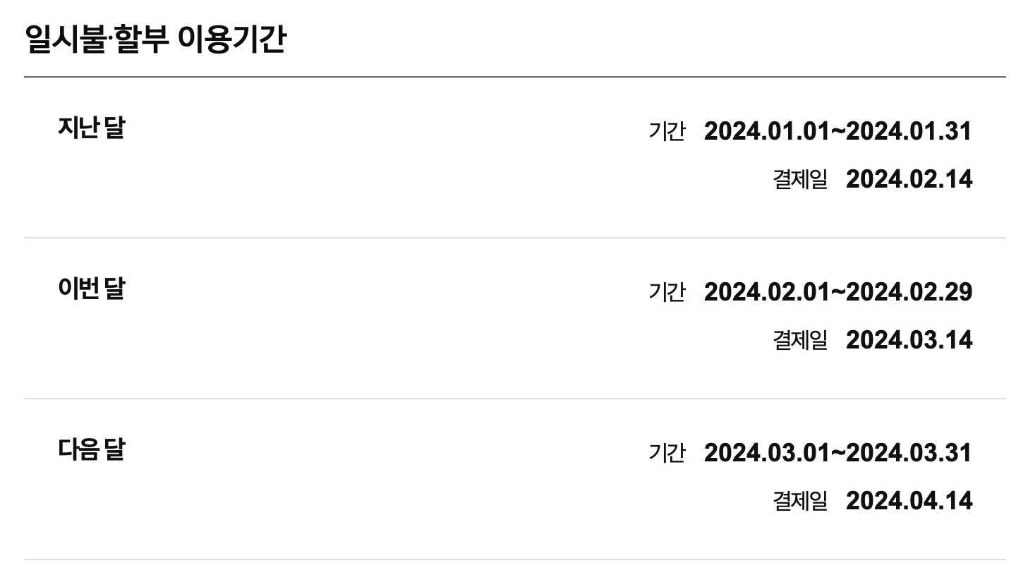 신용카드를 이용하는 경우 대부분 자신의 월급날이나 연금 혹은 월세 등 내 통장으로 수입이 지급되는 경우를 전후로 해서 선택하시는 경우가 많습니다. 월급날을 예로하면 대부분 25일 전후로 되어 있다보니 신용카드를 이용하고 나서 대금 결제일도 이 날짜와 비슷하게 선택하게 되는데요. 저도 그렇게 해서 결제를 해왔는데 아무리 생각해도 결제 금액이 어떤때는 너무 적고, 또 어떤 때는 너무 많고 그래서 이상하다 싶어서 결제일별 이용기간을 확인했더니 삼성카드는 13일을 선택해야 전월 이용기간이 1일 부터 말일까지로 잡히는거였습니다. 그러니 25일로 설정해놓으면 전월 그리고 이번달 까지 걸쳐 30일 정도를 이용기간으로 하니 생각한 금액과 다른 결제금액이 나온 것이었습니다.