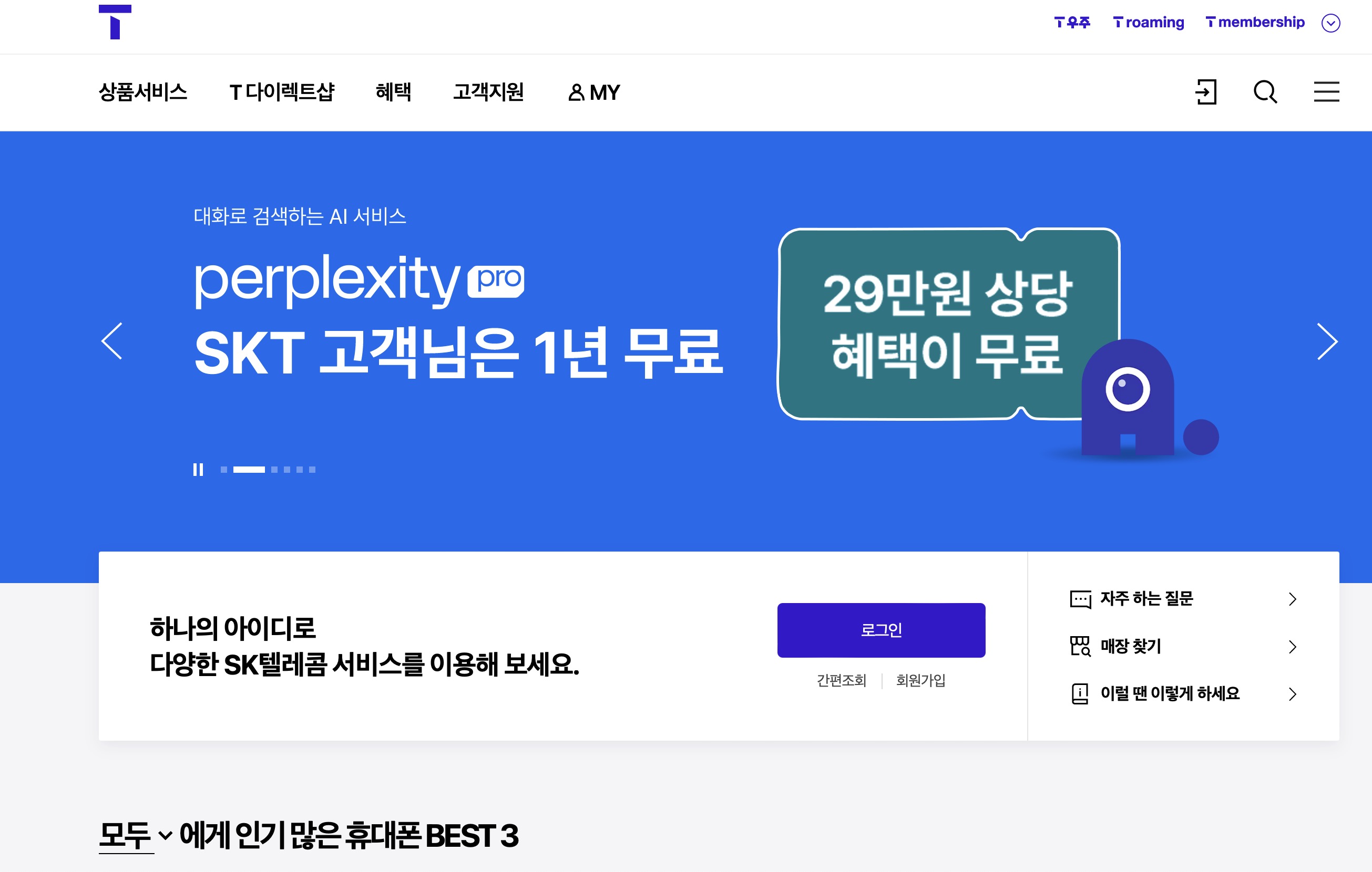 - SKT: SKT 고객센터