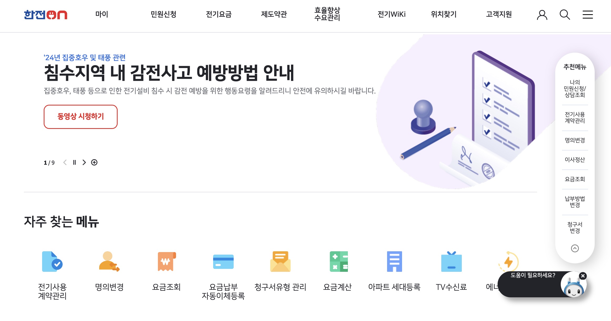 전기요금 조회·납부, 명의변경, 고객상담 등 전기사용 관련 고객서비스를 제공하는 한전의 대표 플랫폼