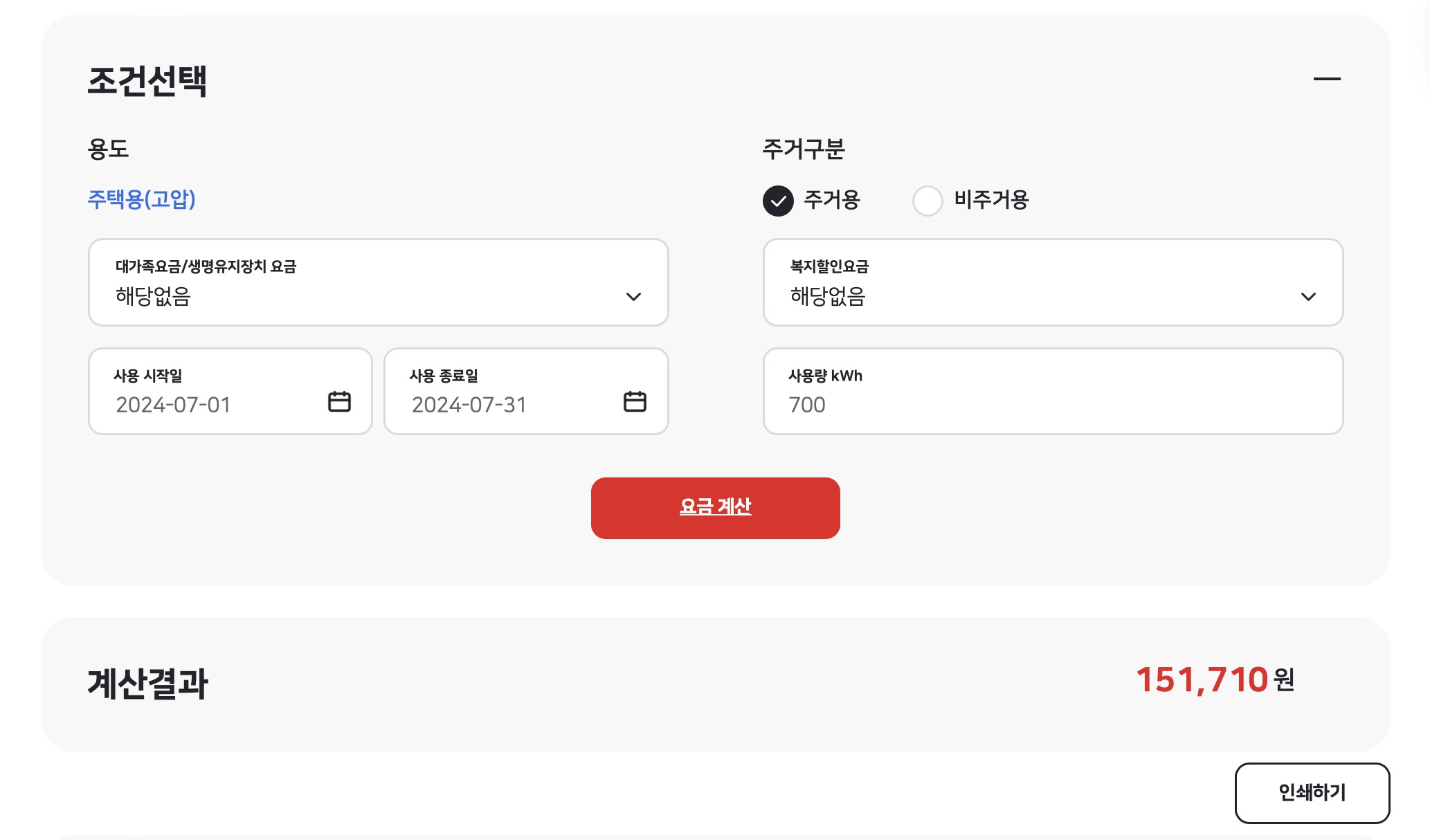 전기 사용 요금을 조회하고 납부할 수 있는 서비스입니다. 요금 내역을 쉽게 확인하고 납부할 수 있습니다.