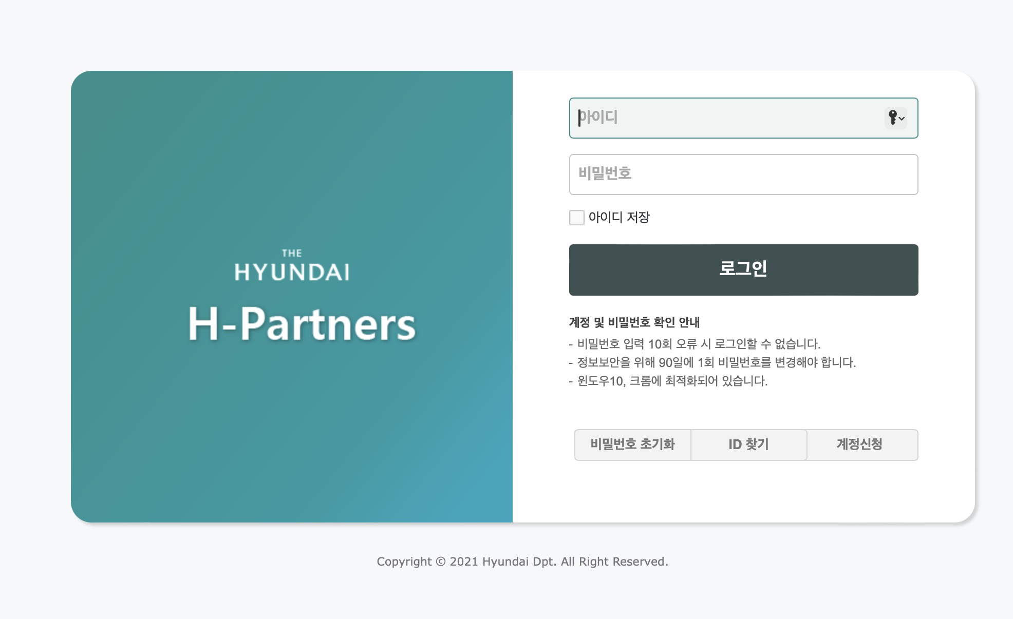 - 정보보안을 위해 90일에 1회 비밀번호를 변경해야 합니다.