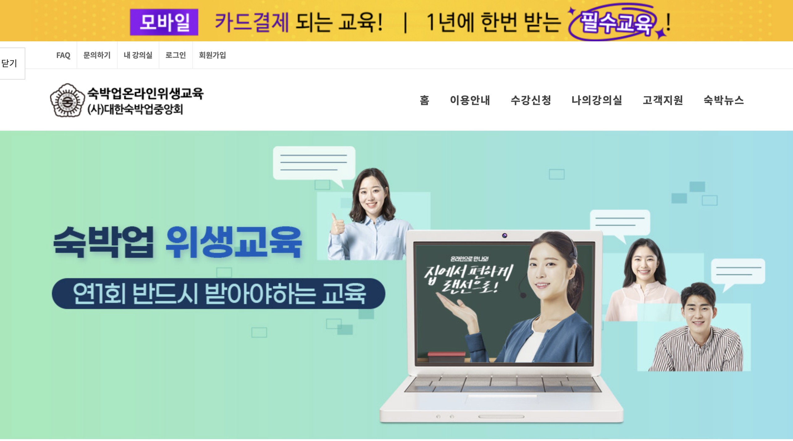 대한숙박업중앙회 숙박업온라인위생교육입니다.
