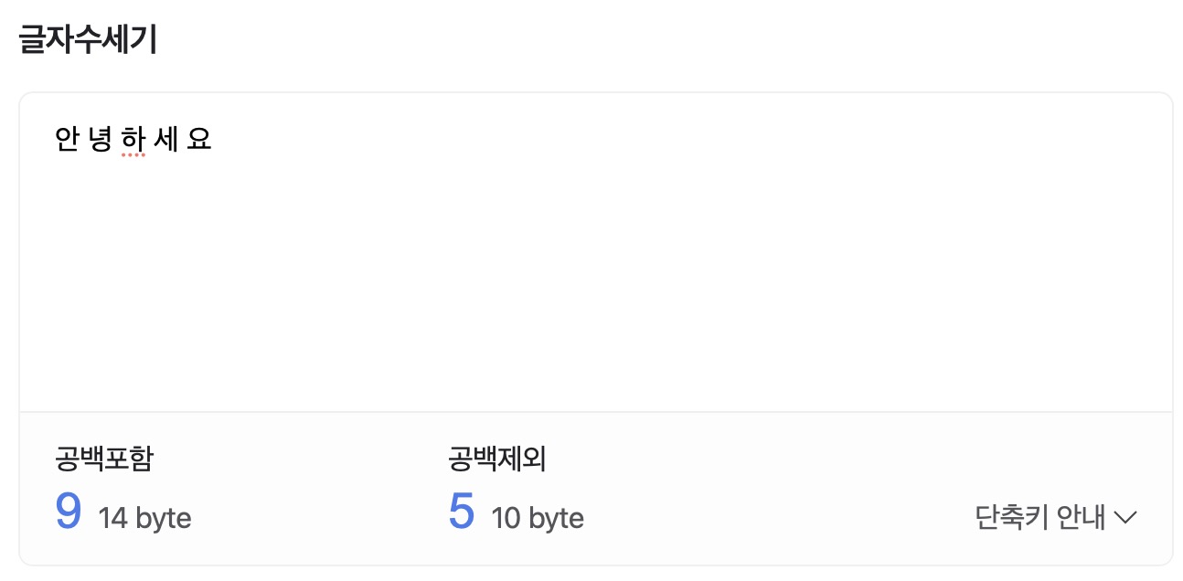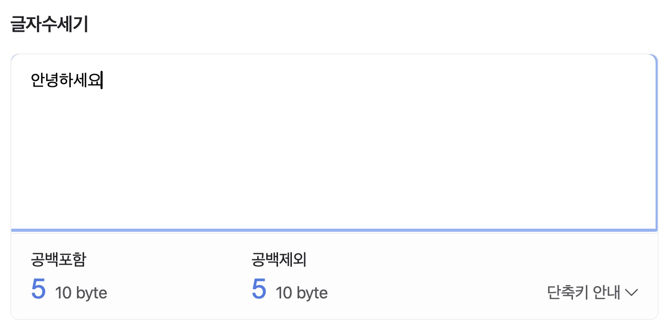 한글을 띄어쓰기 없이 입력하니깐 10바이트가 나오고요